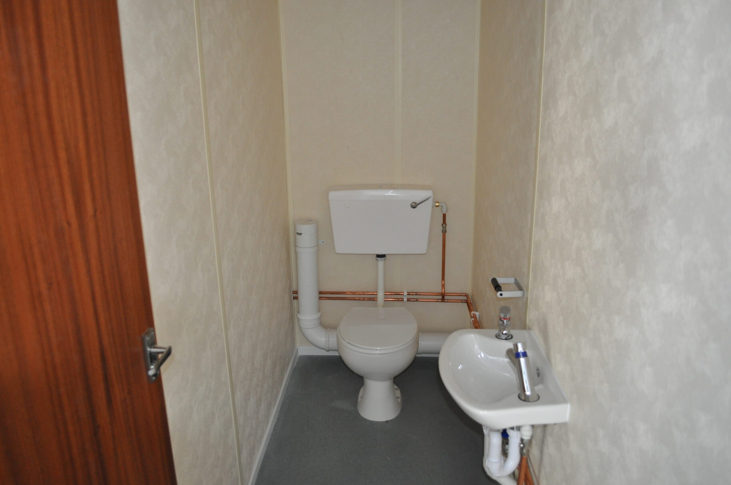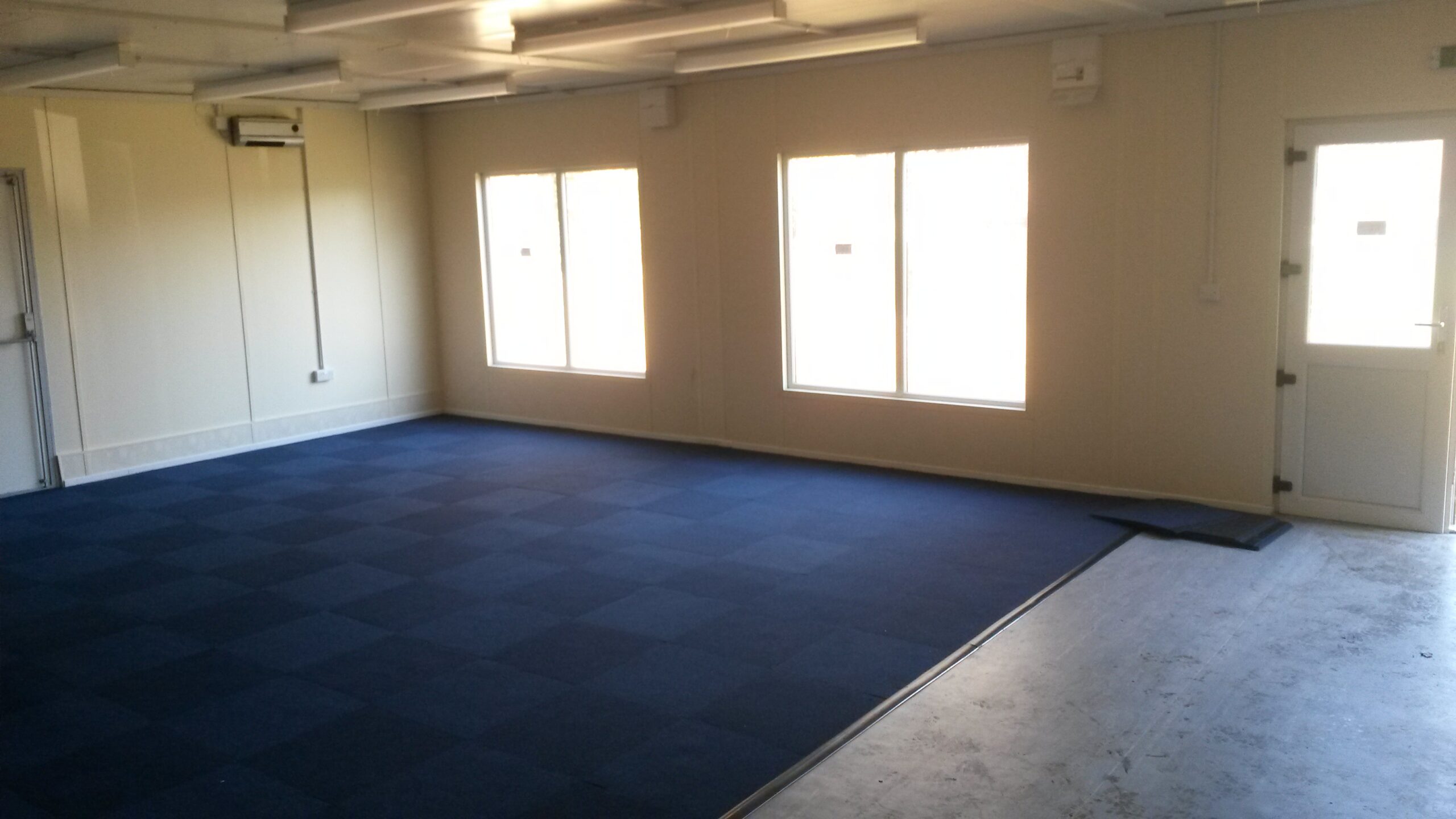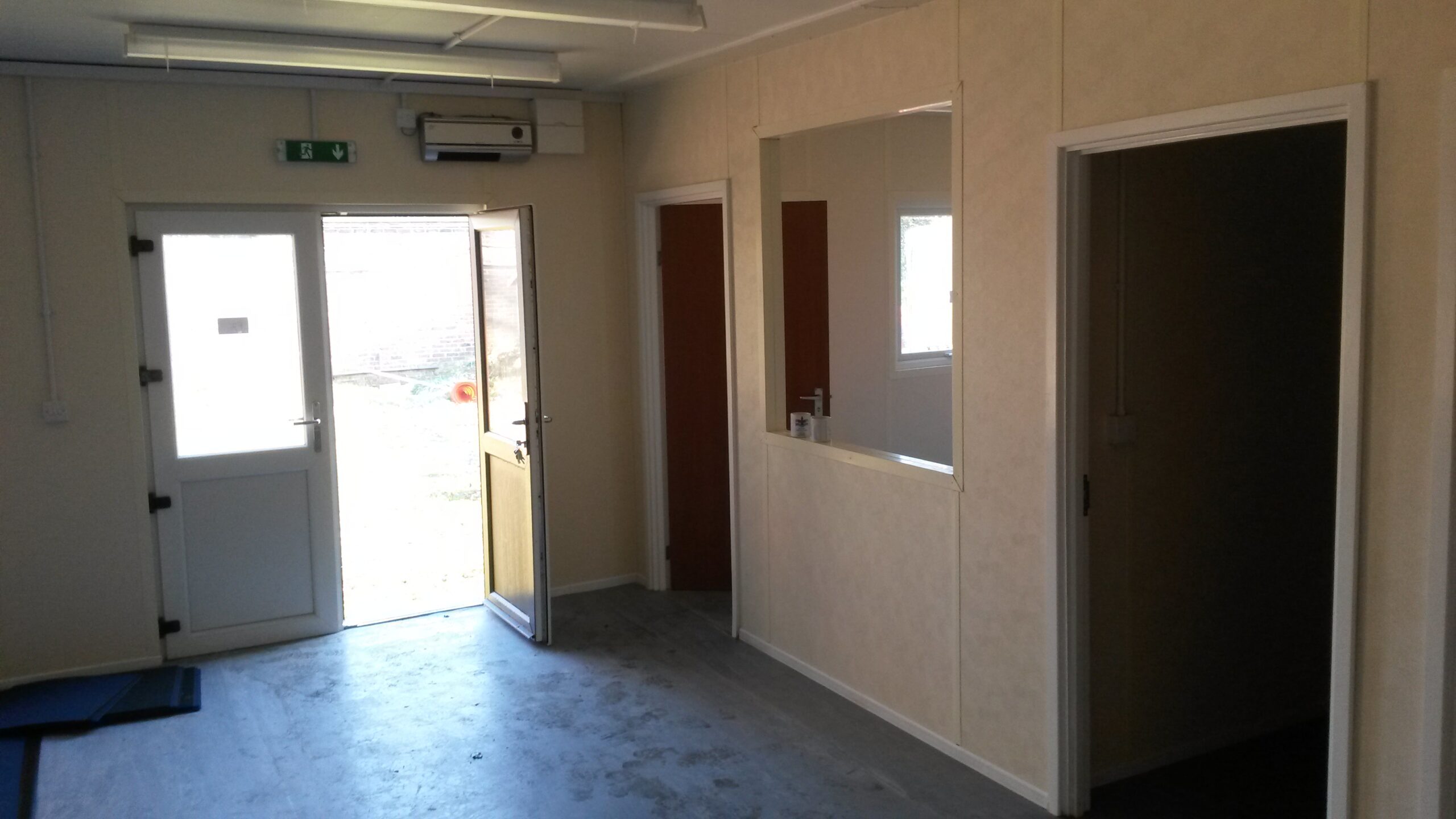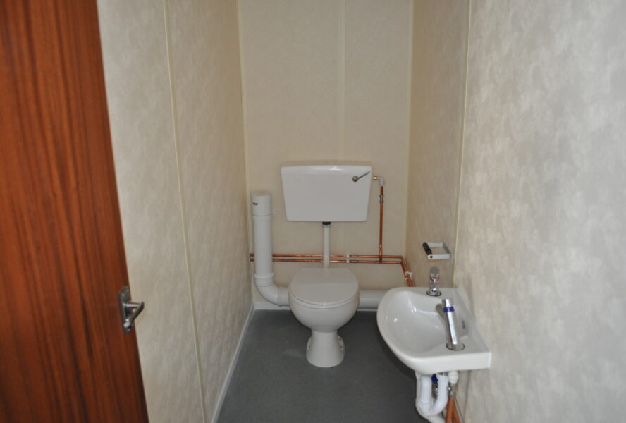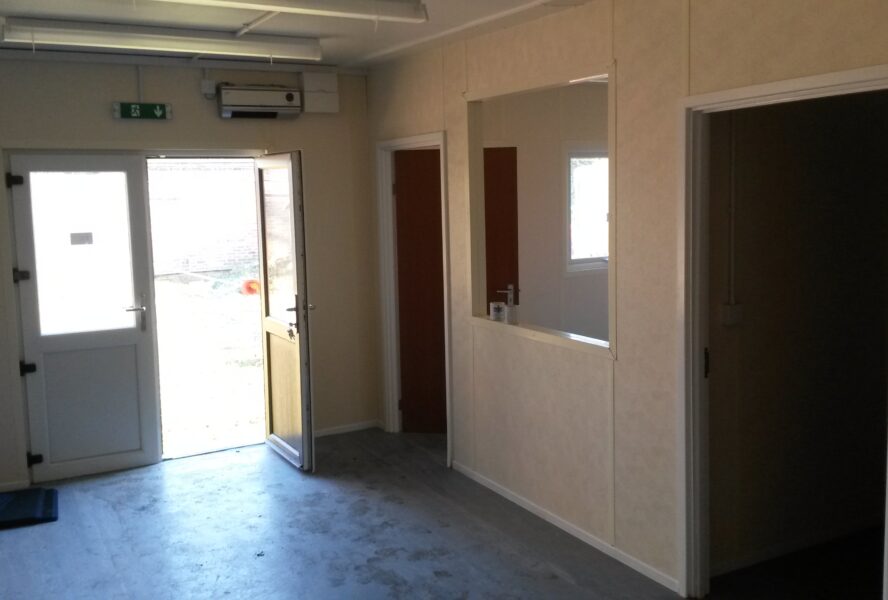 4 bay modular to be used as a nursery. The floor finish was split between carpet and non-slip vinyl flooring to make the unit safe for the use of children. The building was taken out of our stock at Alconbury and put together to become a reality for the client. We refurbished the unit adding in toilet facilities for both adult and children and a canteen area with serving hatch. The external was painted to the customers choice of colour and featured double UPVC entrance doors and fixed UPVC windows. The cabin was then installed and completed at the clients site in Byfleet. Another full project completed by our team.